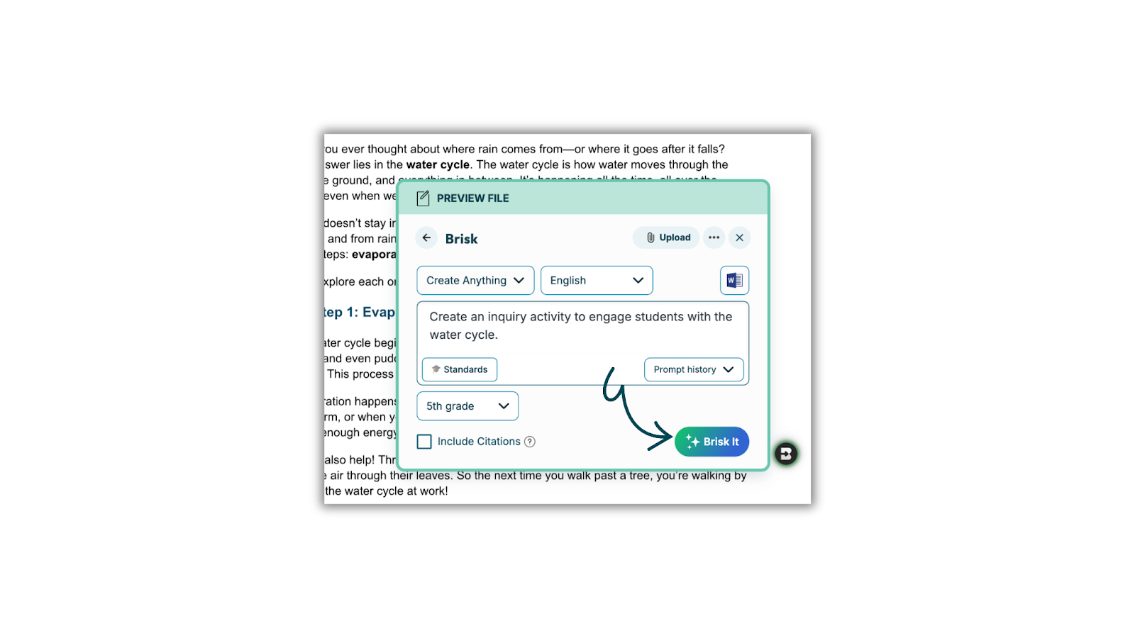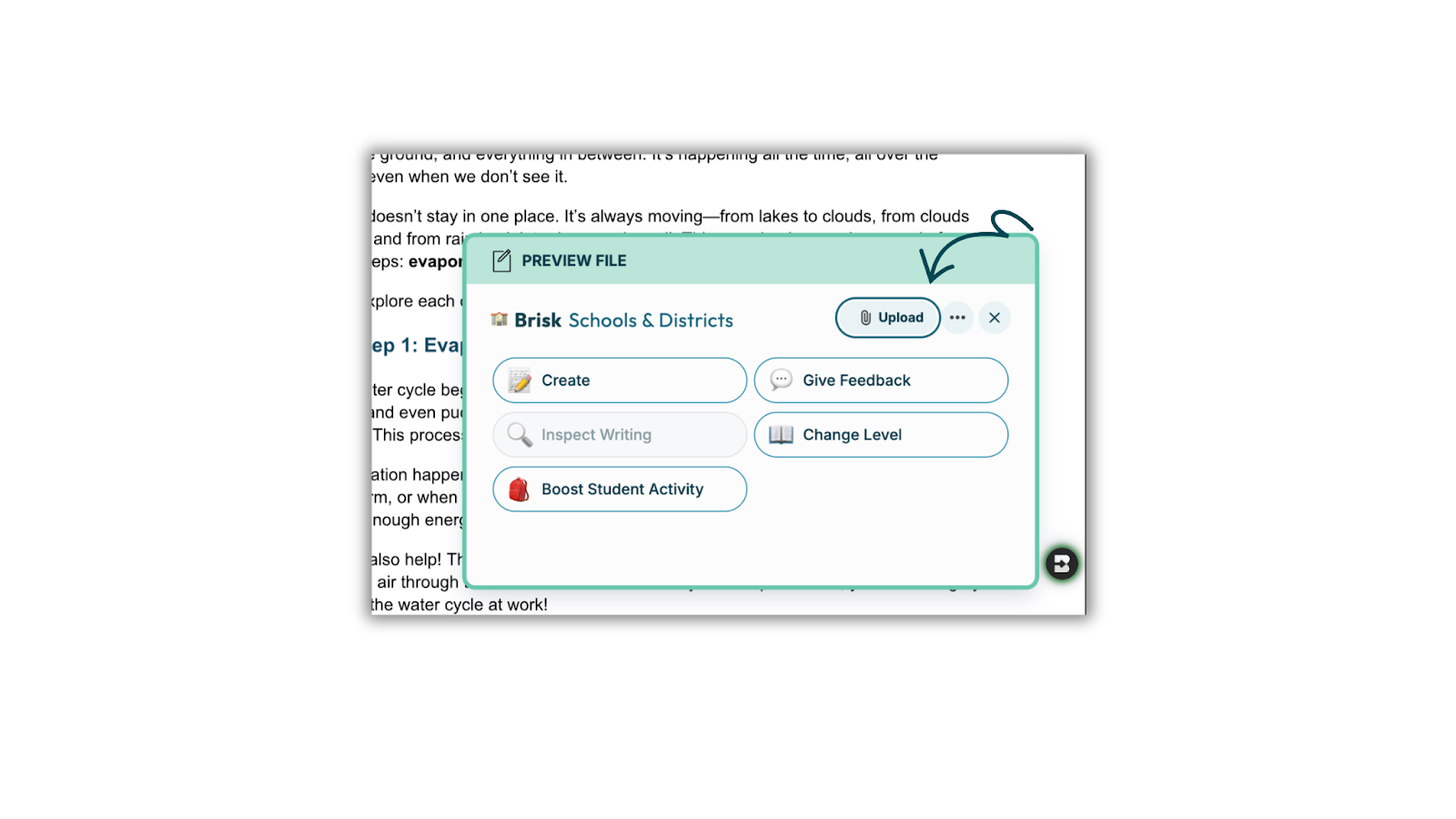 • Use Brisk tools like Create, Give Feedback, Change Reading Level, and Brisk Boost
