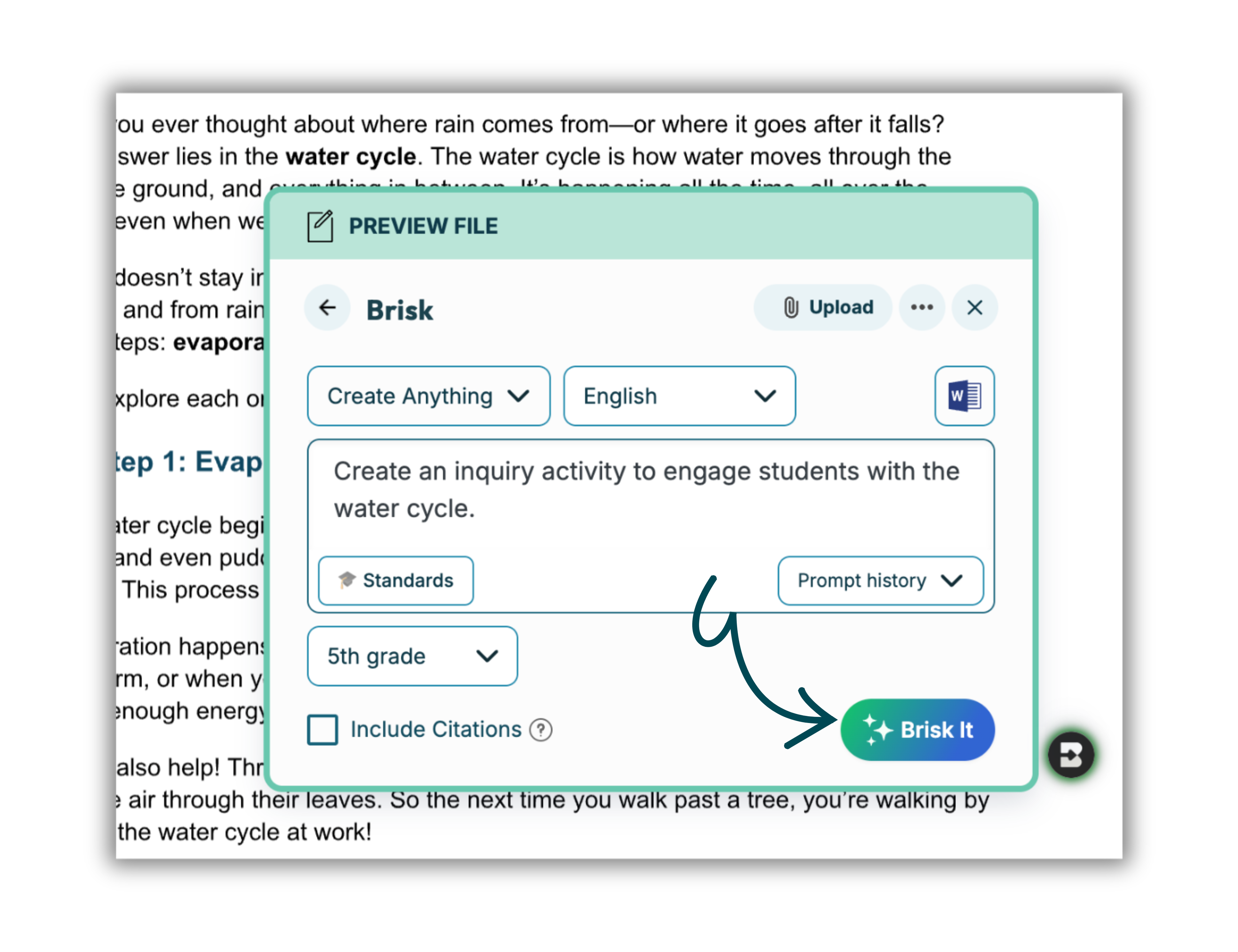 Need to give feedback? Level the text? Create a quiz or lesson? Brisk makes it happen –– right from your file.