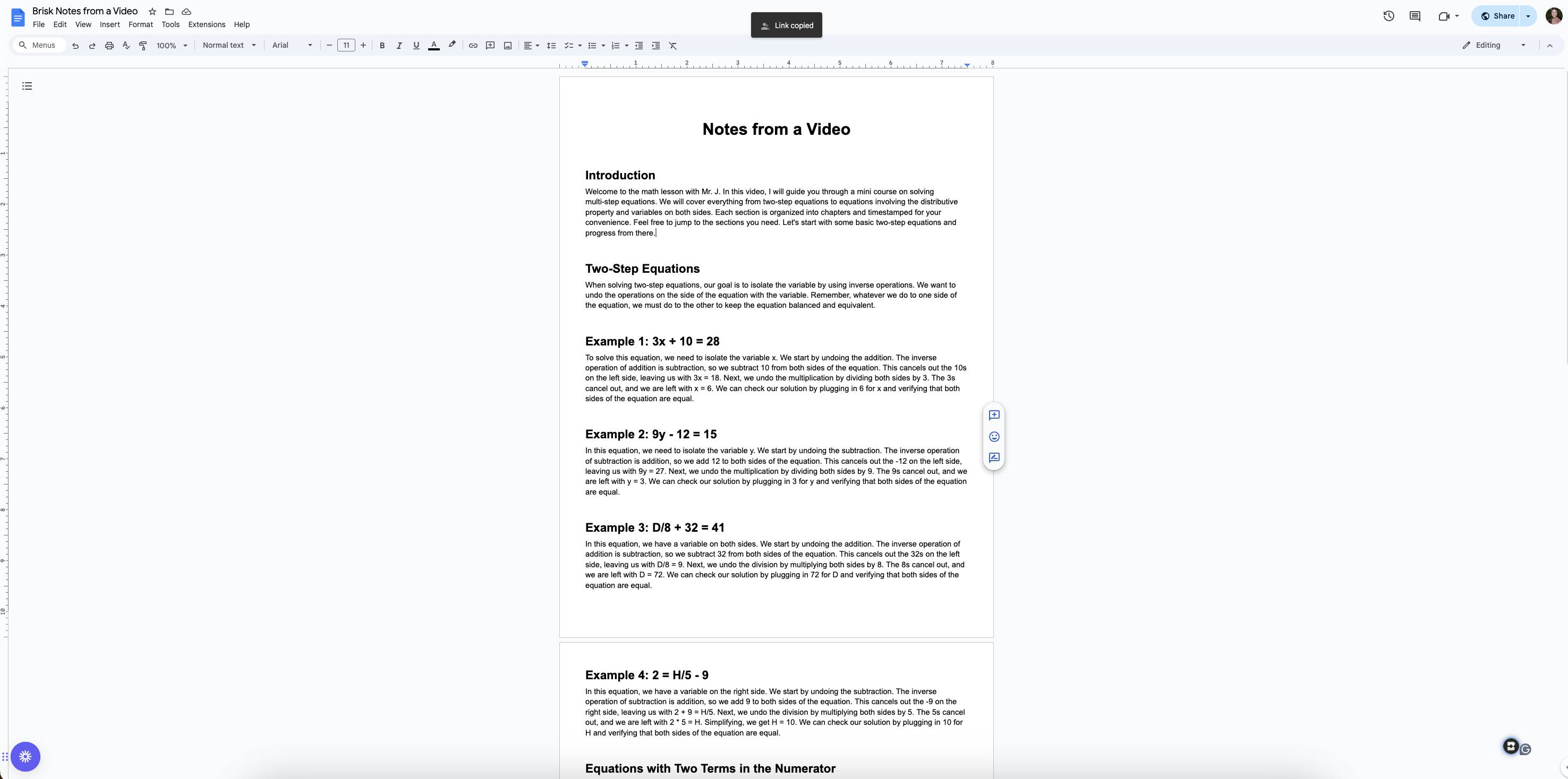 - Clique para gerar suas notas. Em segundos, suas notas serão criadas e abertas em uma nova guia. Aqui está um exemplo de notas criadas a partir de um vídeo do YouTube usando o Brisk: Notas rápidas de um vídeo.