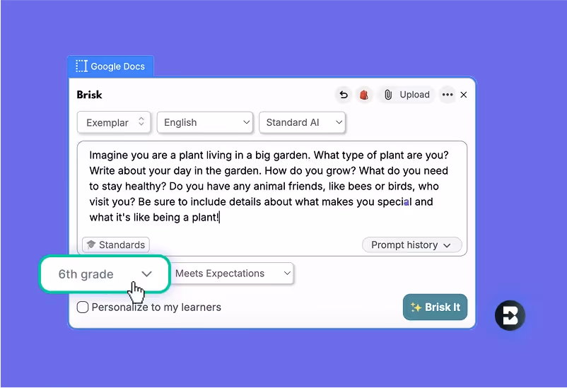 Whether you need a science reflection, a social studies article, or an English essay, Brisk delivers strong, structured exemplars in seconds. Perfect for elementary, middle, and high school teachers looking to improve student writing with engaging, real-world prompts.