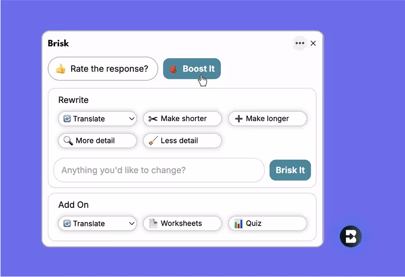 Need more than exemplars? Ask Brisk to generate word problems, quizzes, or group projects to complement your lesson!