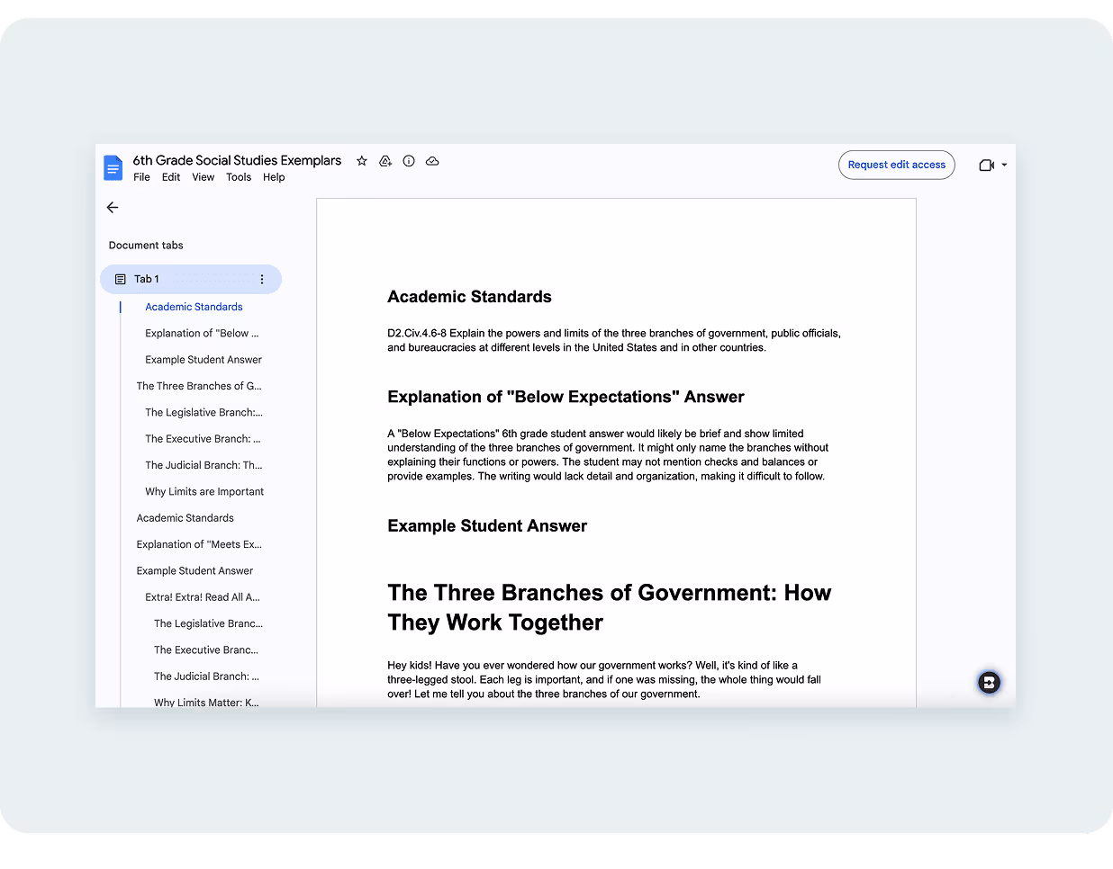 Guide students by providing concrete, assignment-specific examples that reflect the level of quality you expect. Create custom examples with grade levels, curriculum standards, and relevant prompts.