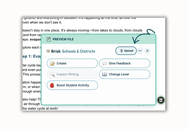 Bring Brisk’s smart feedback to your files. Upload a Word doc and let Brisk suggest clear actionable comments that help students grow without ever leaving Microsoft.