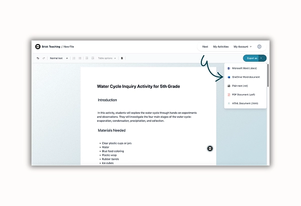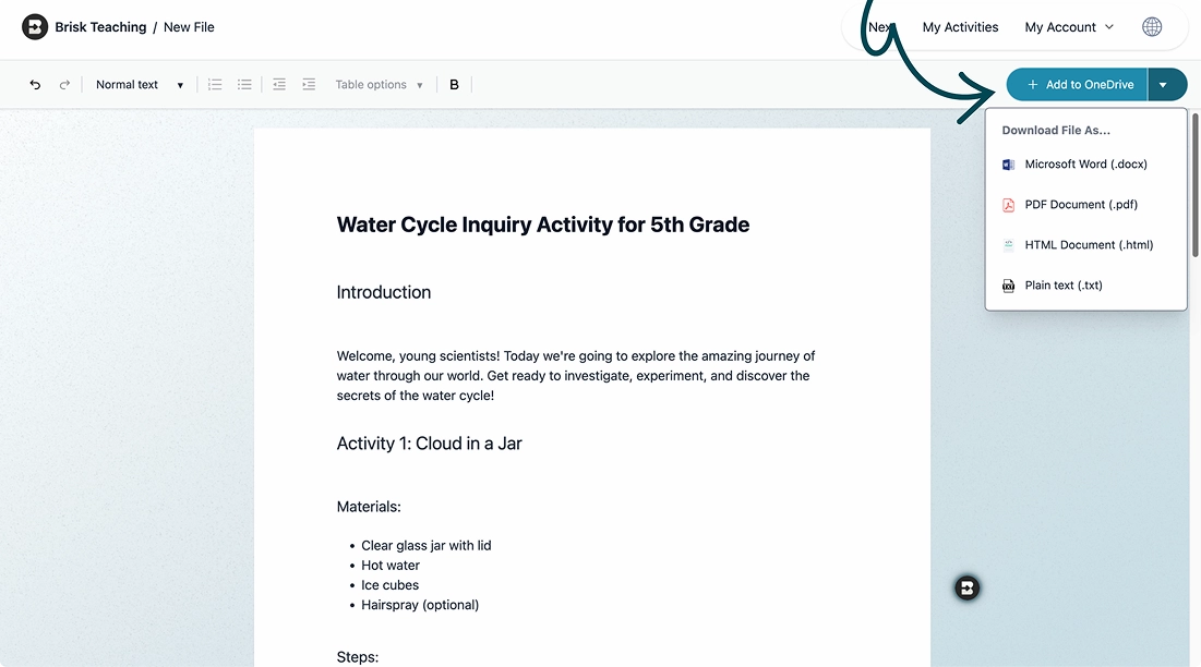 When your resource is ready send it directly to OneDrive. Your materials stay organized in the ecosystem you already know and trust.