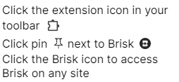 - Fixe Brisk na sua barra de ferramentas. Depois de instalar a extensão, basta fixar o Brisk na barra de ferramentas para acesso rápido onde quer que você esteja. Dessa forma, o Brisk é sempre útil sempre que você quiser gerar um relatório. Veja como: