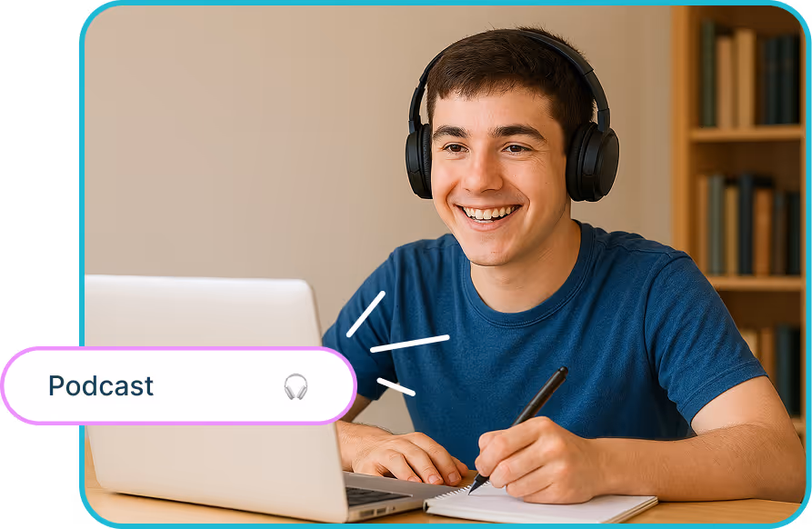 Brisk Podcasts 可帮助您做最重要的事情——以更多方式吸引更多学习者——同时让每个学生更容易获取、更具吸引力和更有意义的内容。