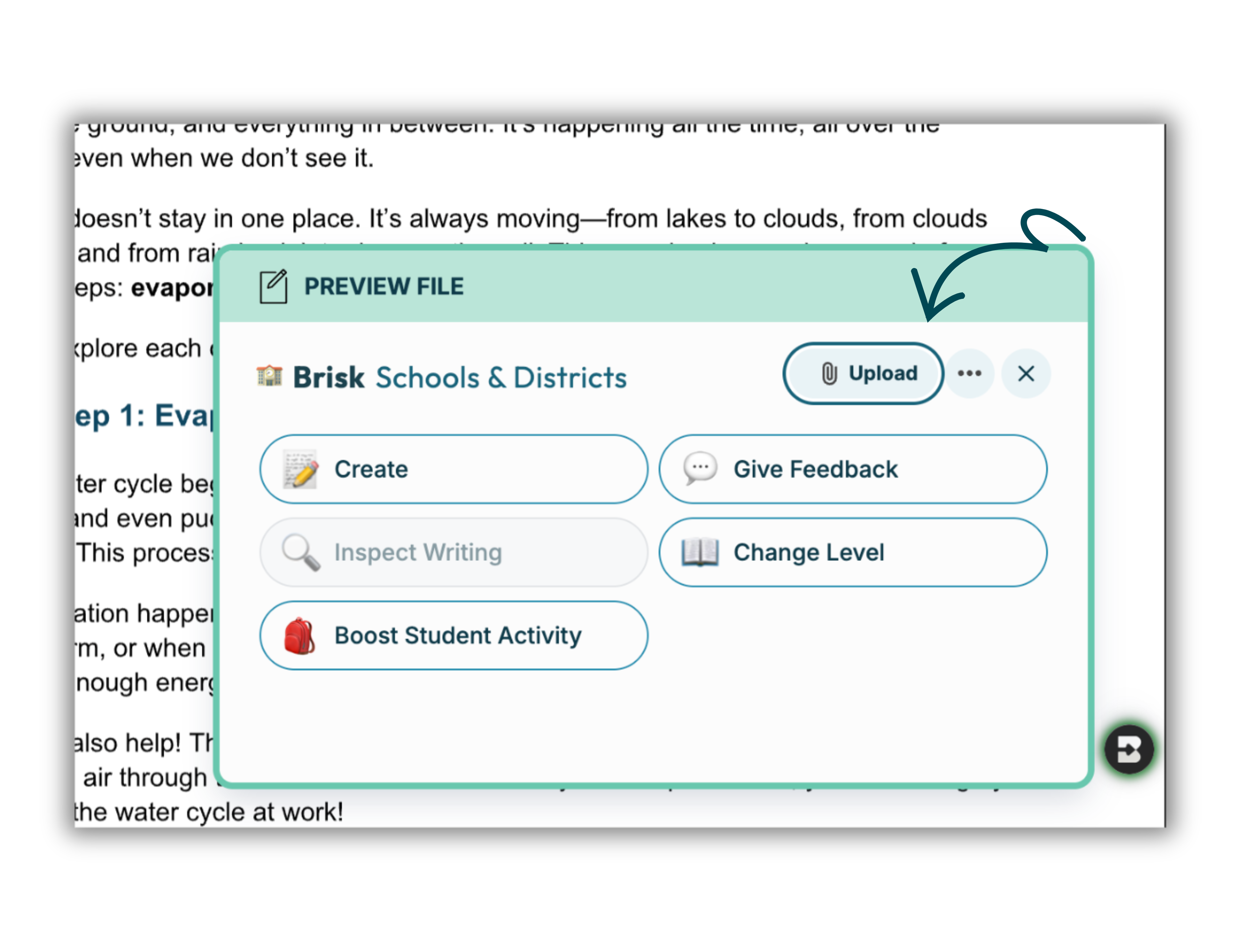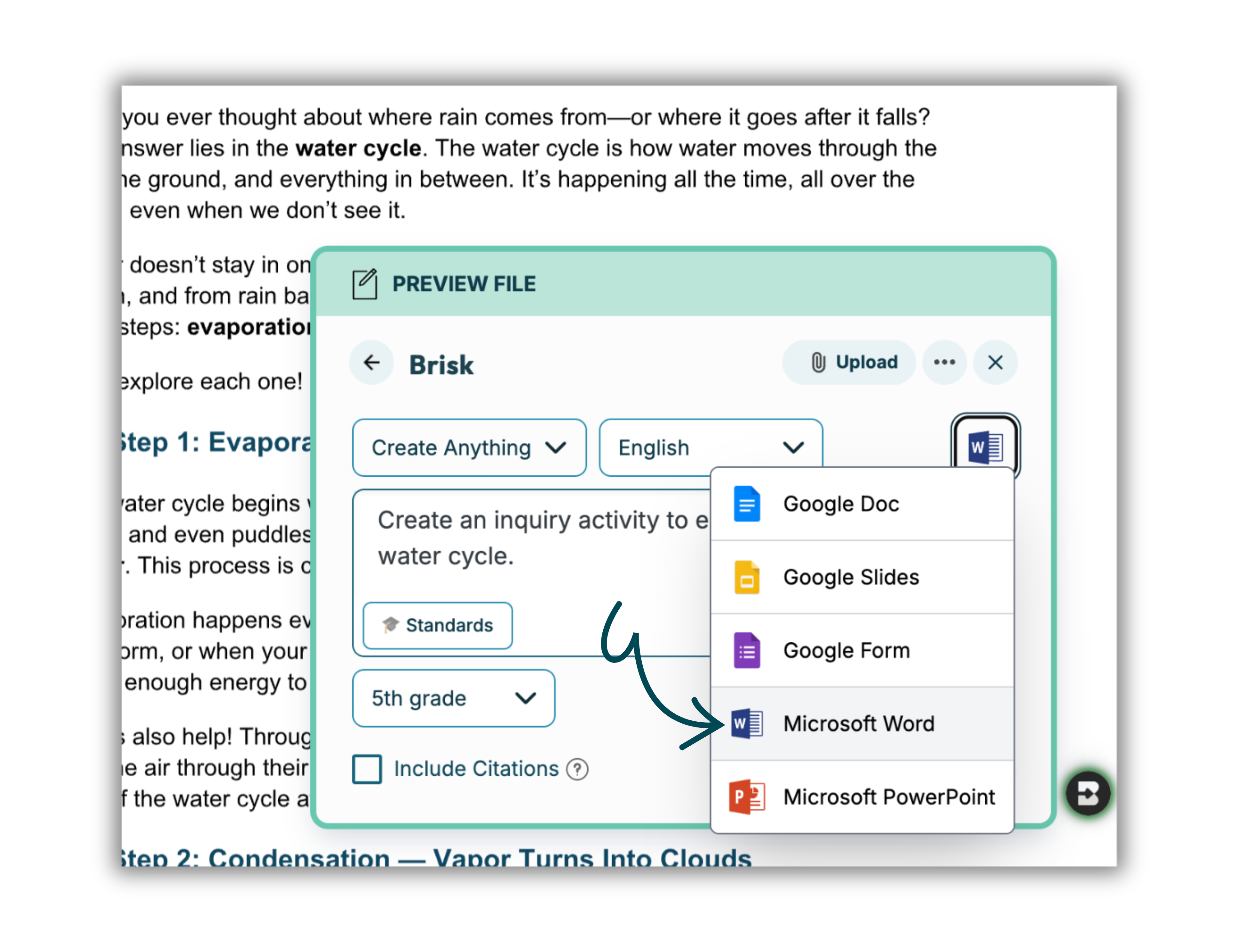 Need to give feedback? Level the text? Create a quiz or lesson? Brisk makes it happen –– right from your file.