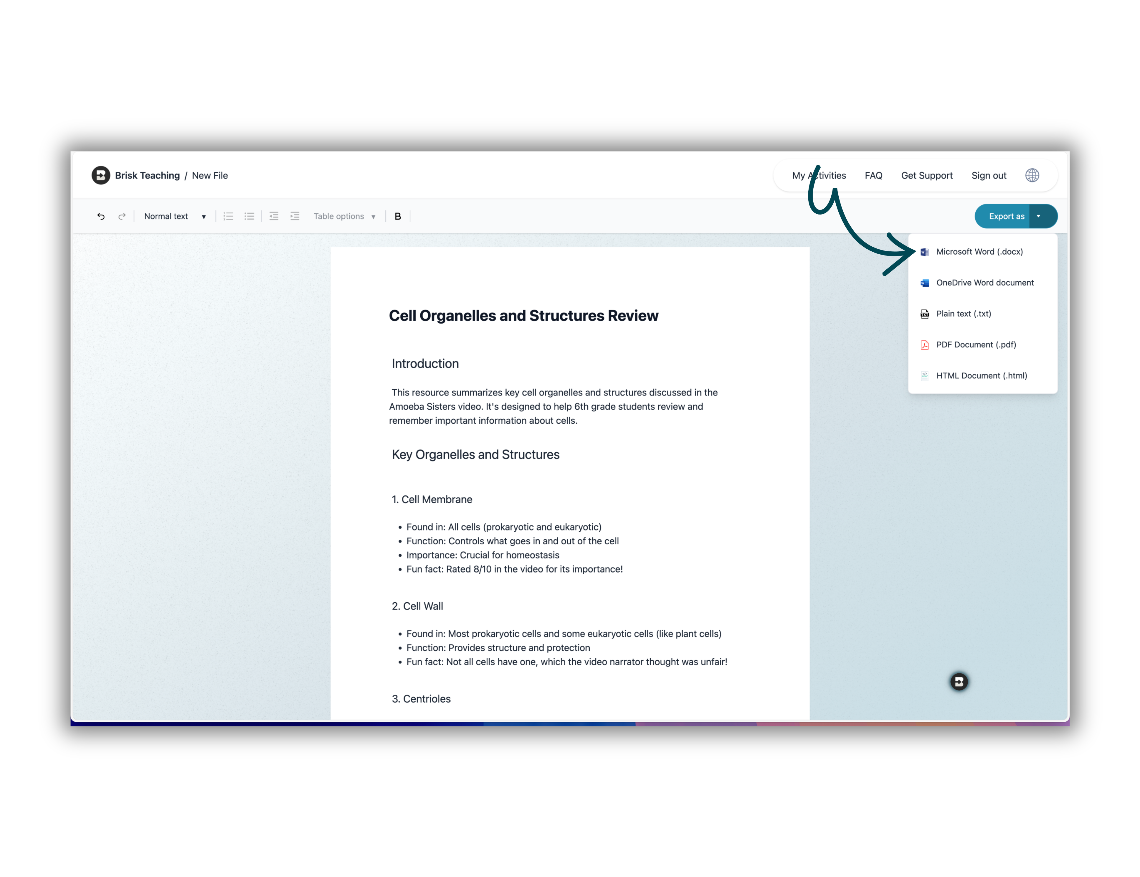 - Export your work as a Word doc, PowerPoint, or PDF