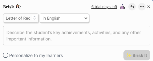 - 推荐信生成器 简化了为学生起草个性化推荐的过程,提高了报告过程的效率和准确性。