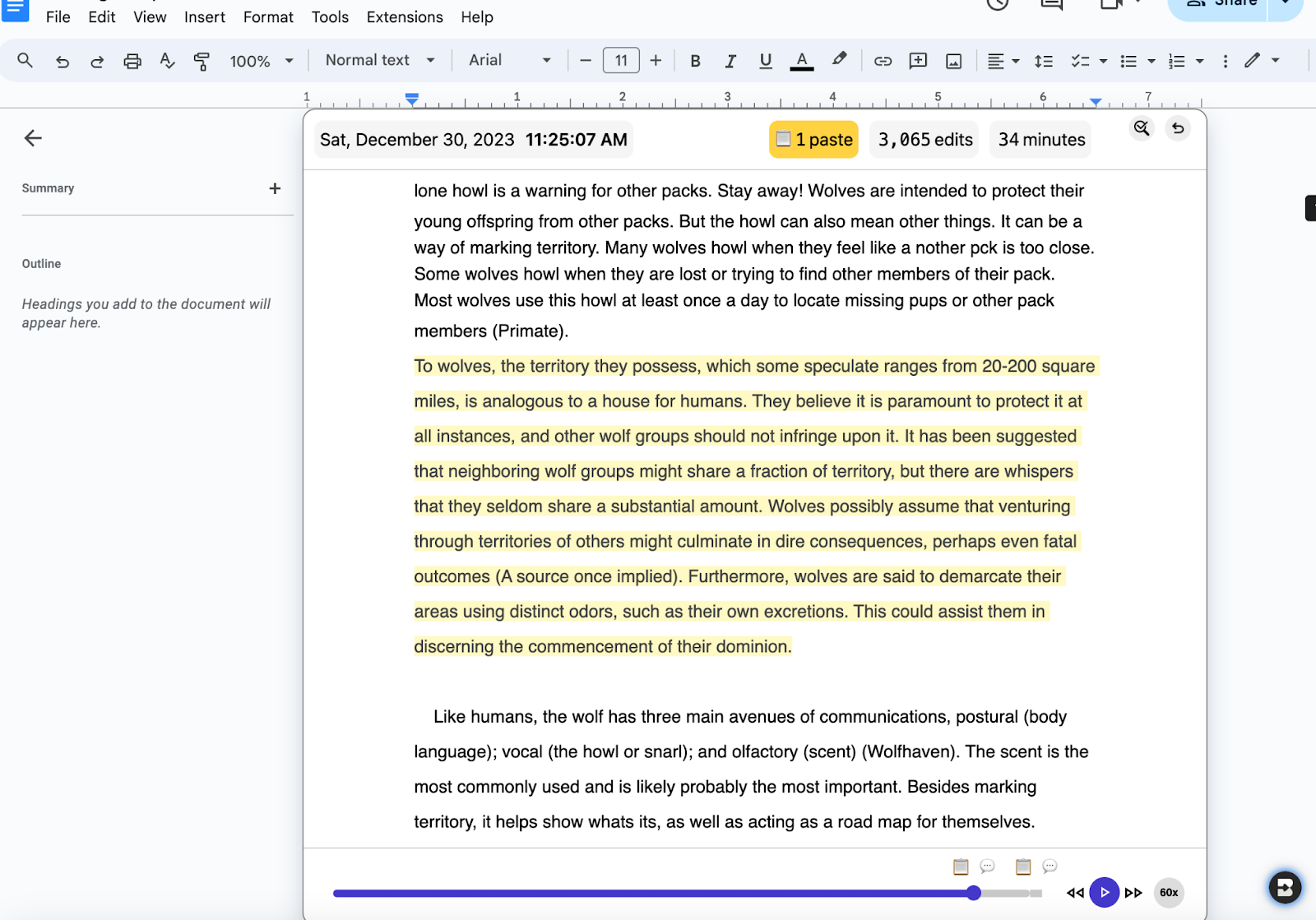 - 重播 -这个强大的功能使您可以查看学生实际是如何写作论文的。它可以深入了解他们何时写这篇文章,他们花了多长时间写这篇文章,以及他们如何根据反馈创作作品。