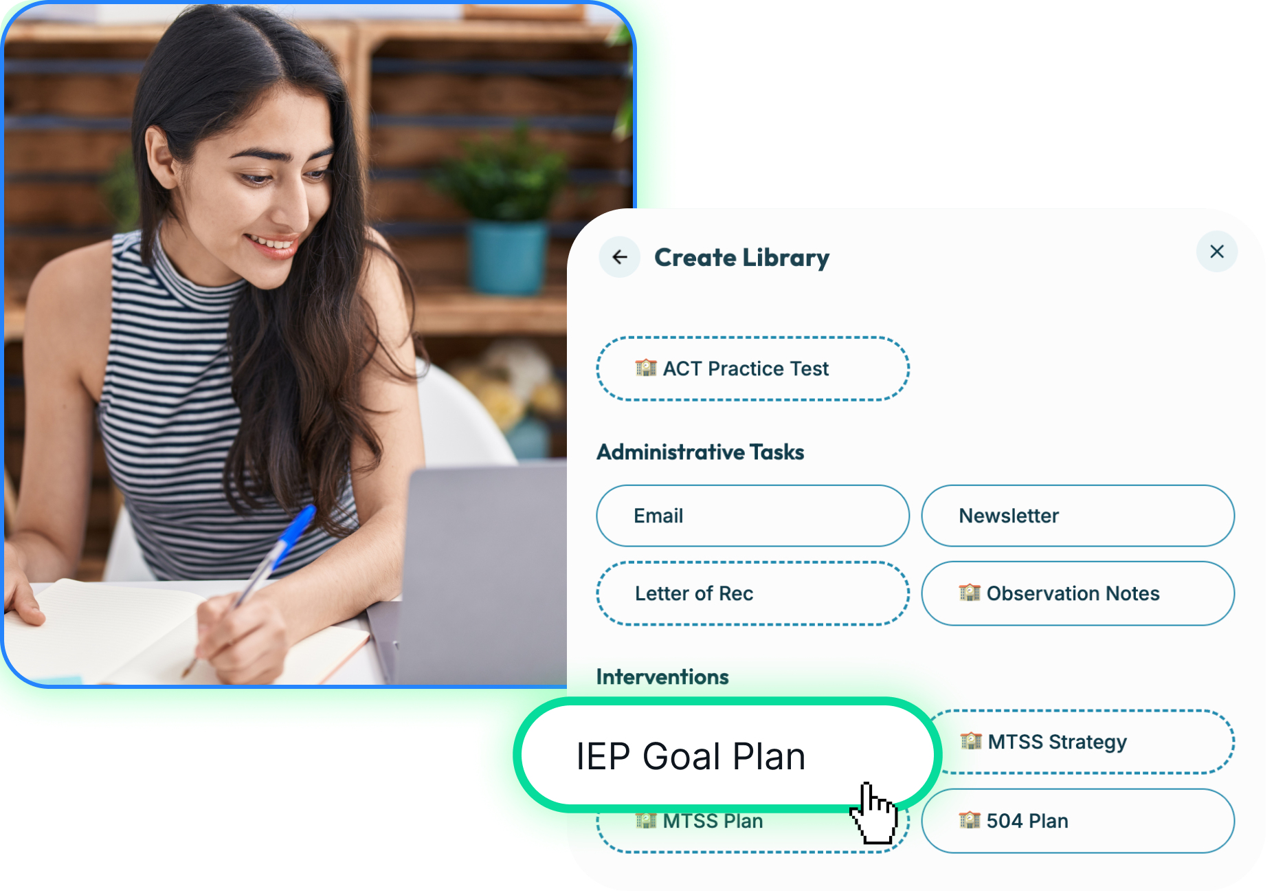 Create robust IEPs that are personalized, compliant, and practical — in a matter of seconds. Get started today.